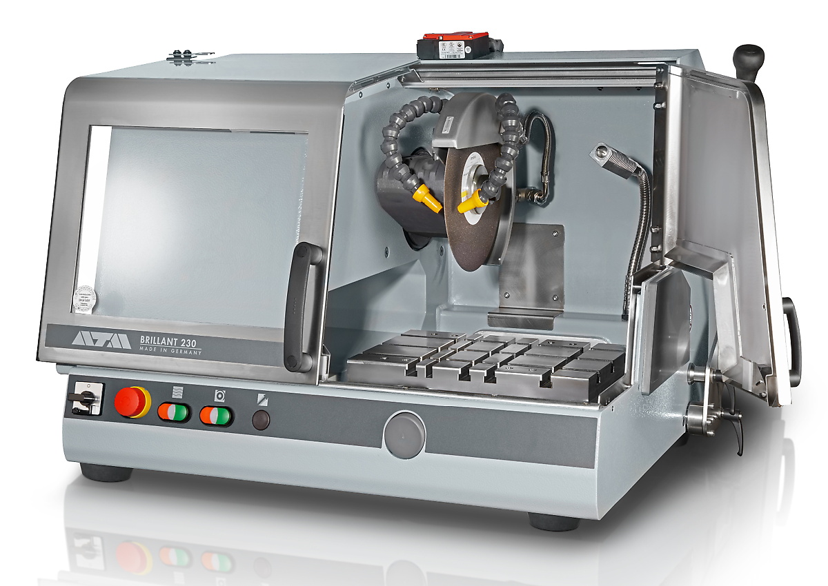 BRILLANT 230是一款精密动态的的手动湿式砂轮切割机,最大切割能力可达Ø 110 mm。 宽敞的切割室可完成各类夹紧操作。坚固的铝制左侧、右侧开口可用于切割连续的长形工件。