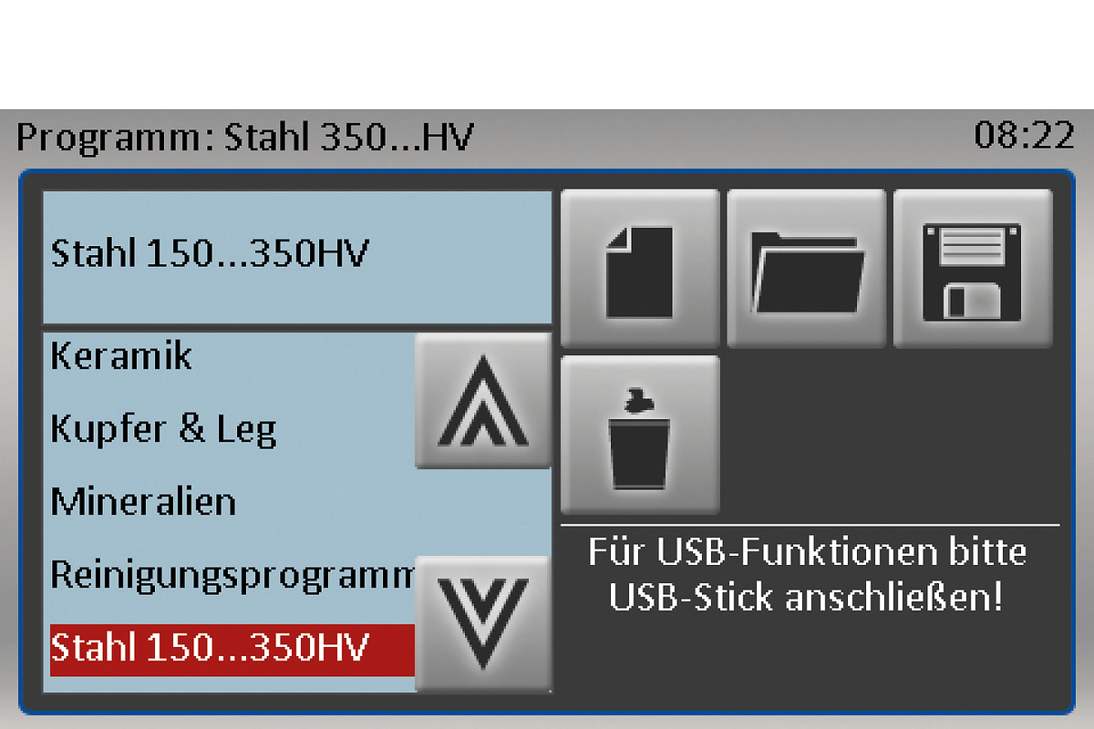 Qpol Vibro 软件的创新设计提供了直观和用户友好的操作。15种不同材料的制备方法预先安装,连同相应的耗材。Qpol Vibro 提供最多200种定制方法的存储,既可以在设备上也可以通过USB,允许从一个设备转移到另一个设备。这些方法可以无限制地在持续时间或振动强度上进行编程。该设备可在手动或自动模式下操作。可选的提醒功能(计时器)可告知操作员程序已结束。QATM 发明了一种特殊的操作模式,以在制备完成后保护准备好的表面:表面保护功能通过防止例如腐蚀,来保持准备好的表面的高质量。