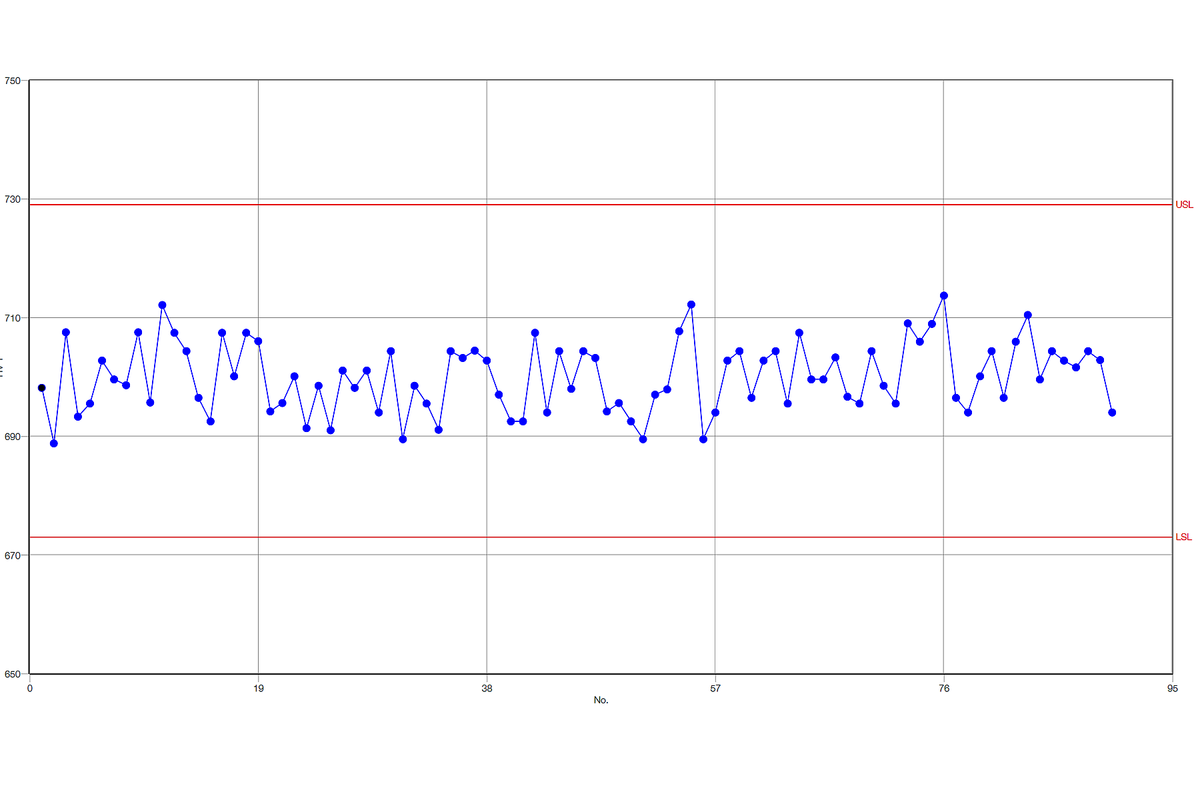 在701/HV1硬度块上打90个测试点。针对相同的90个压痕,采用不同的评估模式进行测量。